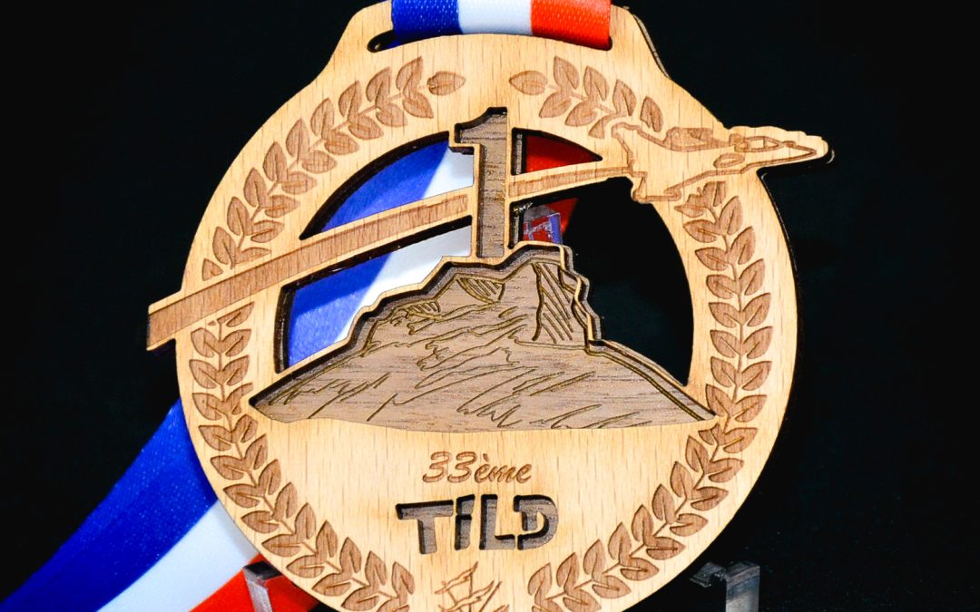 La médaille est réalisée en bois gravé, une technique artisanale qui ajoute une dimension spéciale à cette récompense. Le bois est un matériau chaleureux et naturel qui évoque la durabilité et la tradition. Dans ce cas, la médaille comporte deux types de bois, clair et foncé, créant un contraste visuel qui ajoute du relief et de la profondeur à la pièce. Chaque détail est gravé avec précision pour créer un design qui respire la vie.