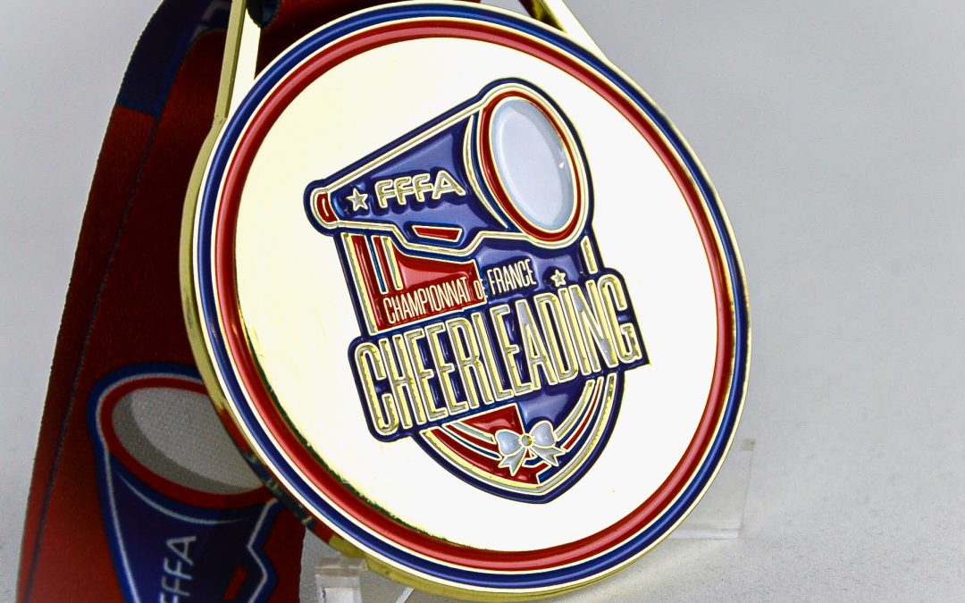 Le Cheerleading, bien plus qu’une simple danse, est un art qui brille de mille feux sur les terrains de football américain. Organisée par la Fédération Française de Football Américain, cette compétition offre aux cheerleaders l’opportunité de montrer leurs talents uniques dans le monde de la danse, de la gymnastique et de l’expression artistique. Pour récompenser ces athlètes passionnés qui apportent énergie et soutien aux équipes, une médaille sur-mesure a été créée, reflétant le visuel de la compétition avec ses couleurs vibrantes et son logo distinctif.
