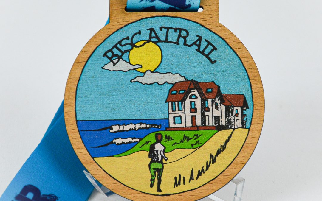 Médaille en bois gravé certifié avec impression couleur. Le bois est du hêtre massif sur lequel nous effectuons l’impression couleur du visuel de la médaille.