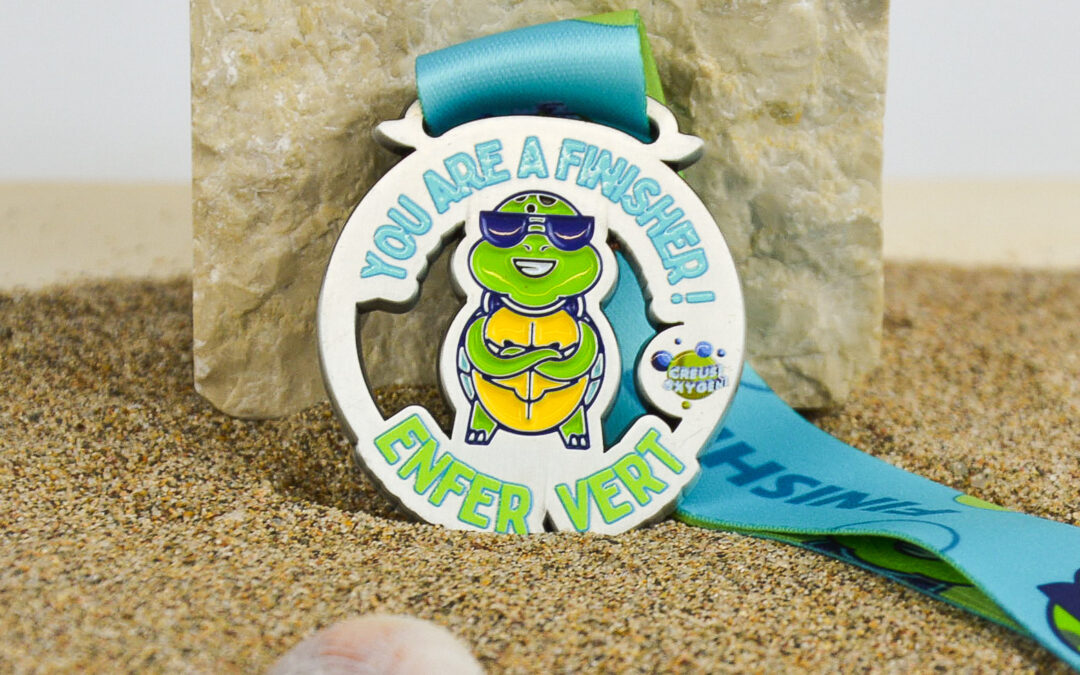 À l’issue de cette course d’endurance et de folie, tous les participants franchissant la ligne d’arrivée recevront une médaille finisher personnalisée. Cet objet symbolique est bien plus qu’un simple souvenir, c’est une marque de fierté pour avoir affronté et surmonté l’Enfer Vert.