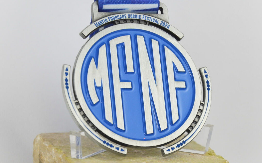 Pour immortaliser cette expérience intense, chaque participant franchissant la ligne d’arrivée reçoit une médaille finisher spécialement conçue pour l’événement. Réalisée en métal, cette médaille est un véritable hommage à l’esprit du Martin Fourcade Nordic Festival. Le design de la médaille reprend le logo de l’événement, incluant les couleurs emblématiques et les éléments visuels qui incarnent parfaitement l’ADN des courses et de l’ambiance unique de ce festival.