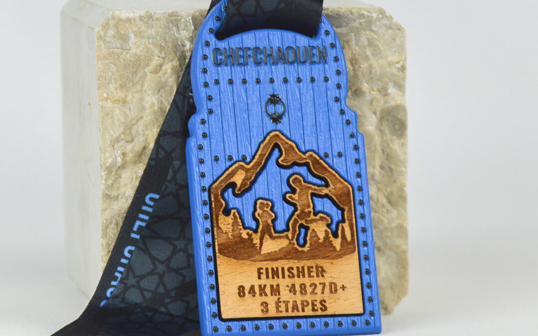 Pour cette édition, la médaille Finisher du Trail Chefchaouen Talassemtane a été soigneusement conçue pour refléter à la fois l’esprit de la course et la richesse culturelle de la région. Fabriquée en mélange de métal et de bois, cette médaille se distingue par son originalité et son caractère unique.