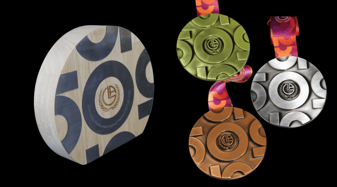 Les médailles et trophées incarnent la diversité culturelle, l’engagement collectif et la passion sportive qui unissent les Nations unies depuis un demi-siècle.