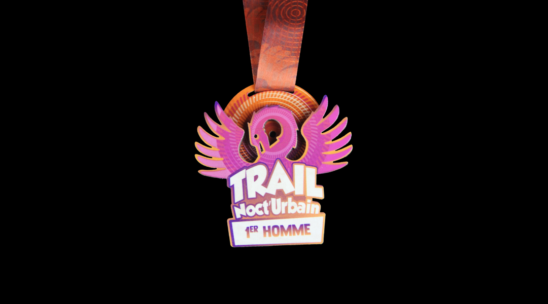 Contrairement aux médailles finisher classiques, la médaille du Trail Noct’Urbain 2025 était exclusivement destinée aux podiums.