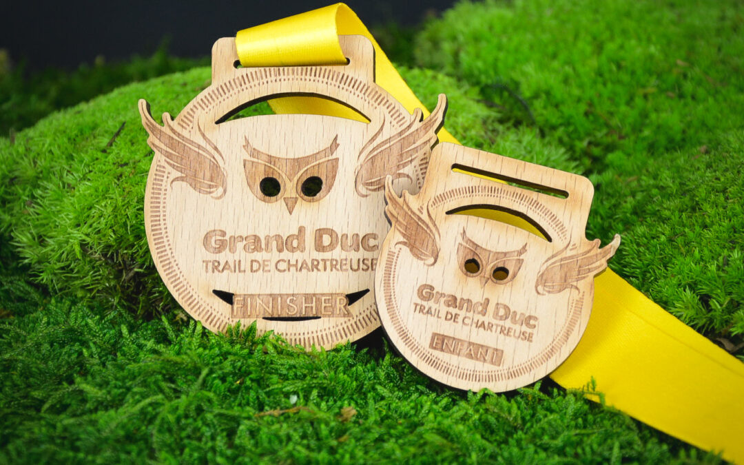 La médaille Finisher du Grand Duc Trail de Chartreuse est à l’image de l’événement : authentique et empreinte de valeurs fortes. Réalisée en bois gravé dans l’atelier Made in France d’Ultime Sport, cette médaille est le fruit d’un savoir-faire artisanal et d’un engagement en faveur de la qualité et de l’authenticité. Fabriquée à partir de bois d’origine française, elle est entièrement personnalisée par gravure et découpe laser, ce qui en fait une véritable médaille Made in France.