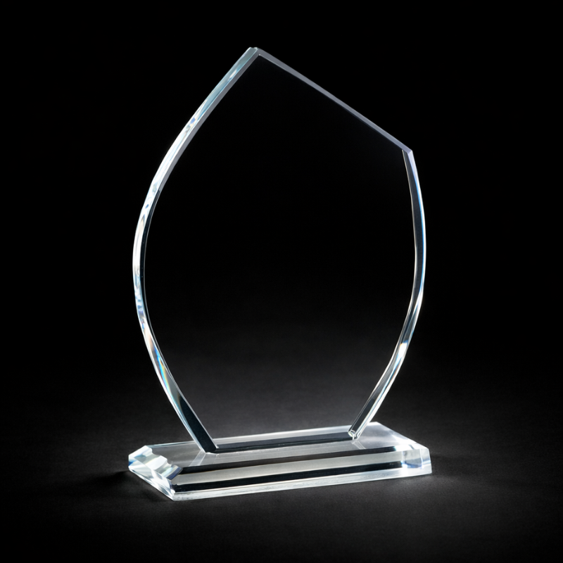 Glass trophy with the possibility of personalizing the trophy with laser engraving (logo and texts)
