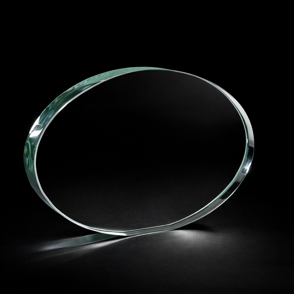 Glass trophy with possibility to customize the trophy with laser engraving (logo and texts)