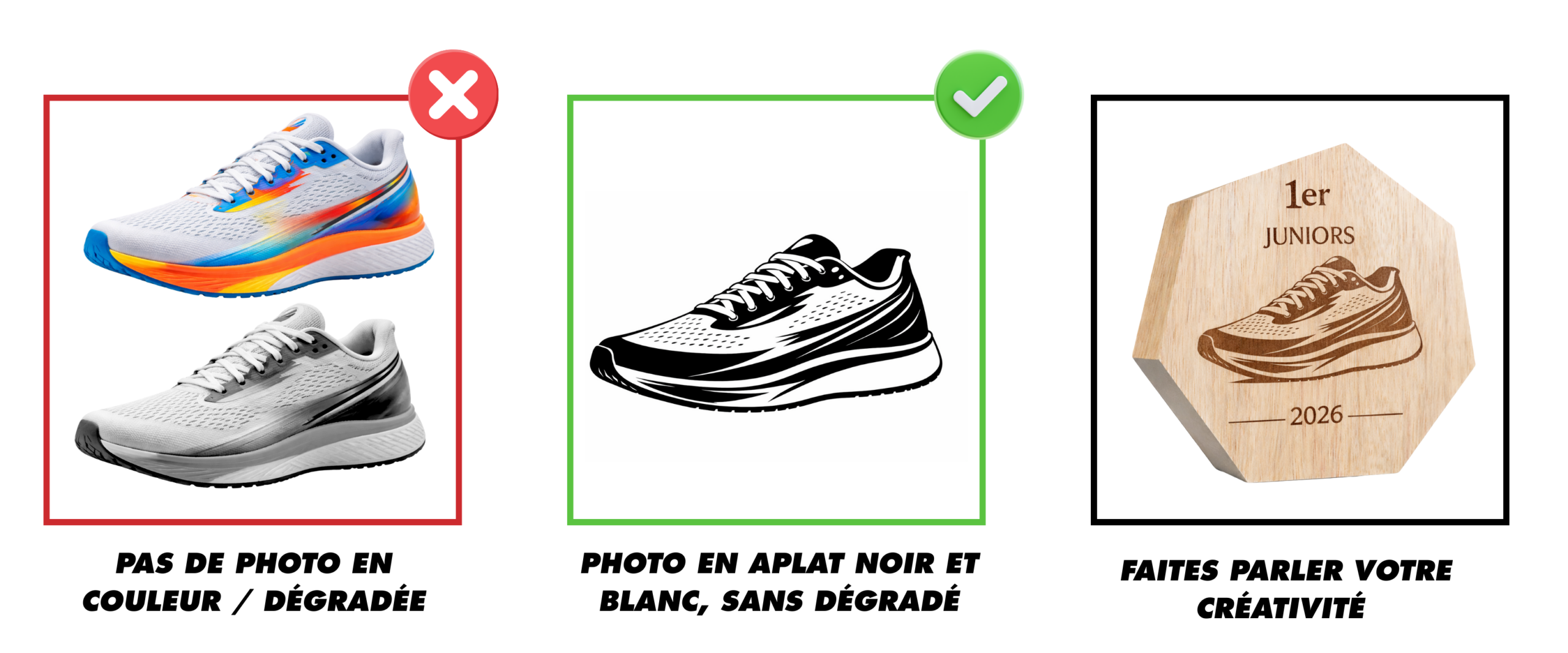 Important for engraving: For a clear and precise result, your files must imperatively be provided in black flat (100%), without gradients or grayscale.