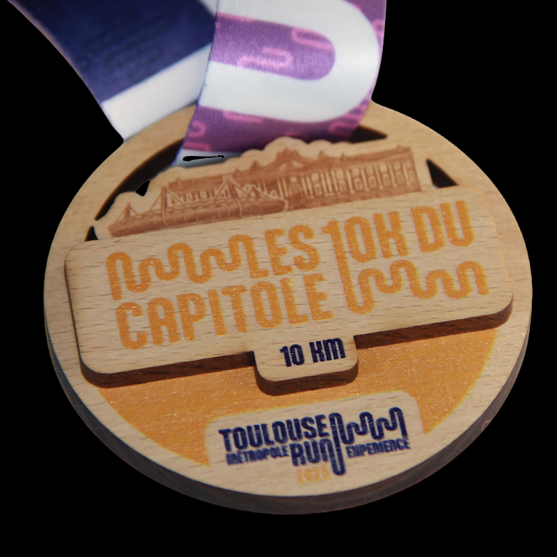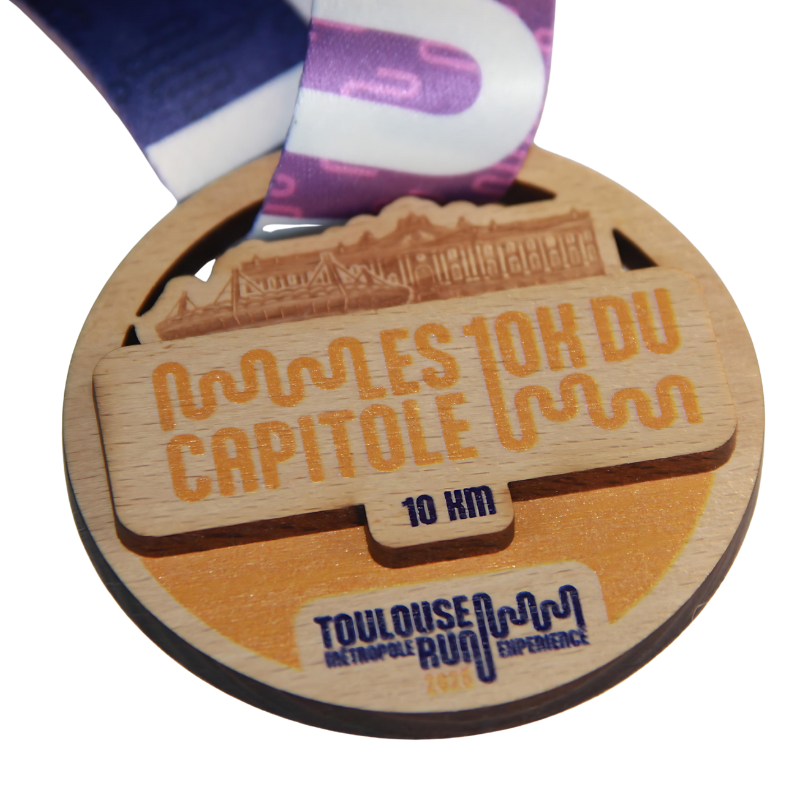 Choisir une médaille en bois gravée ou imprimée, c’est opter pour une récompense à la fois écoresponsable et originale. Fabriquées à partir de hêtre massif français et certifiées Origine France Garantie, nos médailles en bois allient respect de l’environnement et esthétique. La gravure laser offre un rendu précis et élégant, tandis que l’impression UV permet d’ajouter des couleurs vives et de refléter fidèlement l’identité graphique de la course. De plus en plus d’organisateurs d’événements, comme l’Ecotrail de Paris ou la Veni Vici, choisissent ce type de médaille pour sa modernité, son authenticité et son impact visuel.