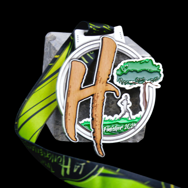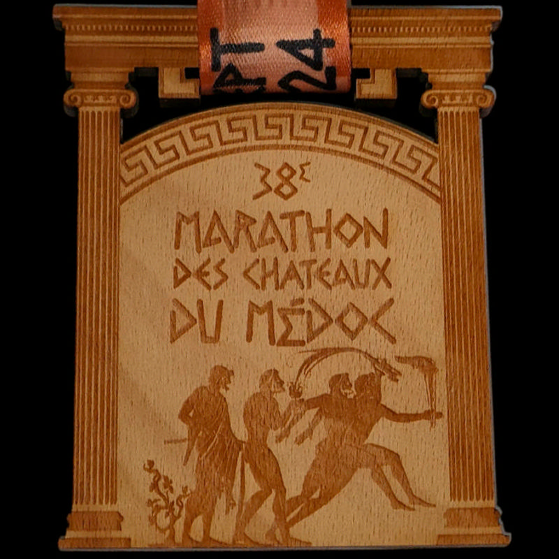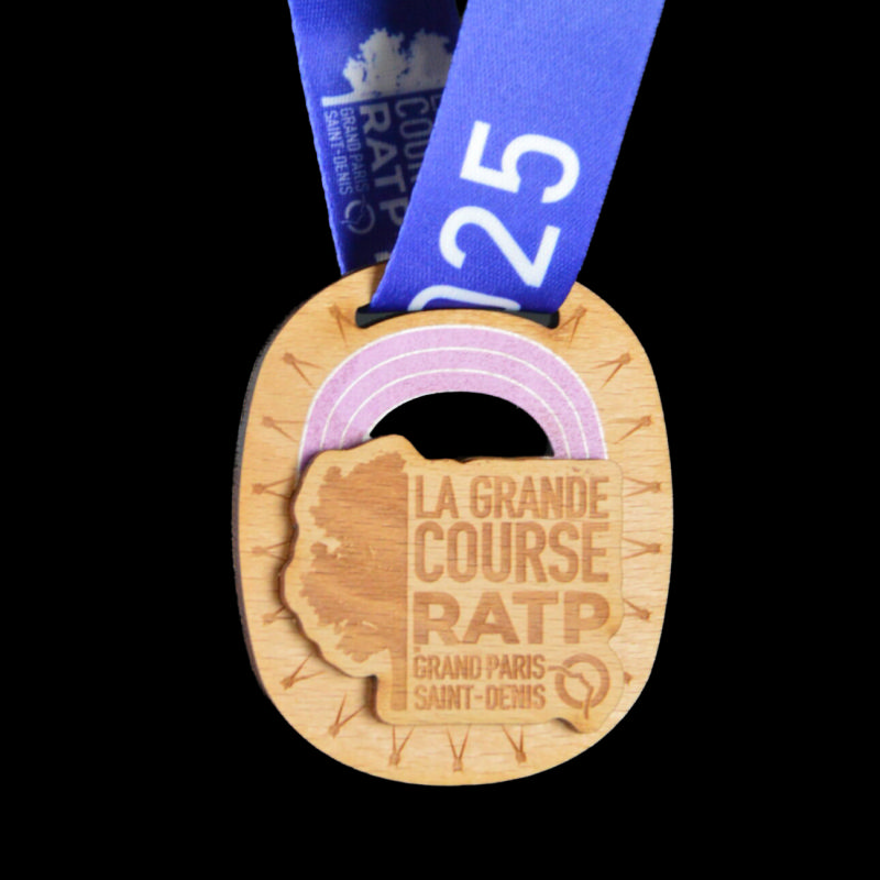 - Médaille en bois gravée : La médaille en bois gravée séduit de plus en plus d’organisateurs grâce à son caractère authentique et écoresponsable. Fabriquée à partir de hêtre massif français certifié, elle est personnalisée par gravure et découpe laser pour obtenir des détails précis et des contrastes visuels entre bois clair et bois foncé. Chaque médaille est unique par son veinage, et son rendu naturel correspond parfaitement aux courses en plein air et aux événements attachés aux valeurs environnementales.